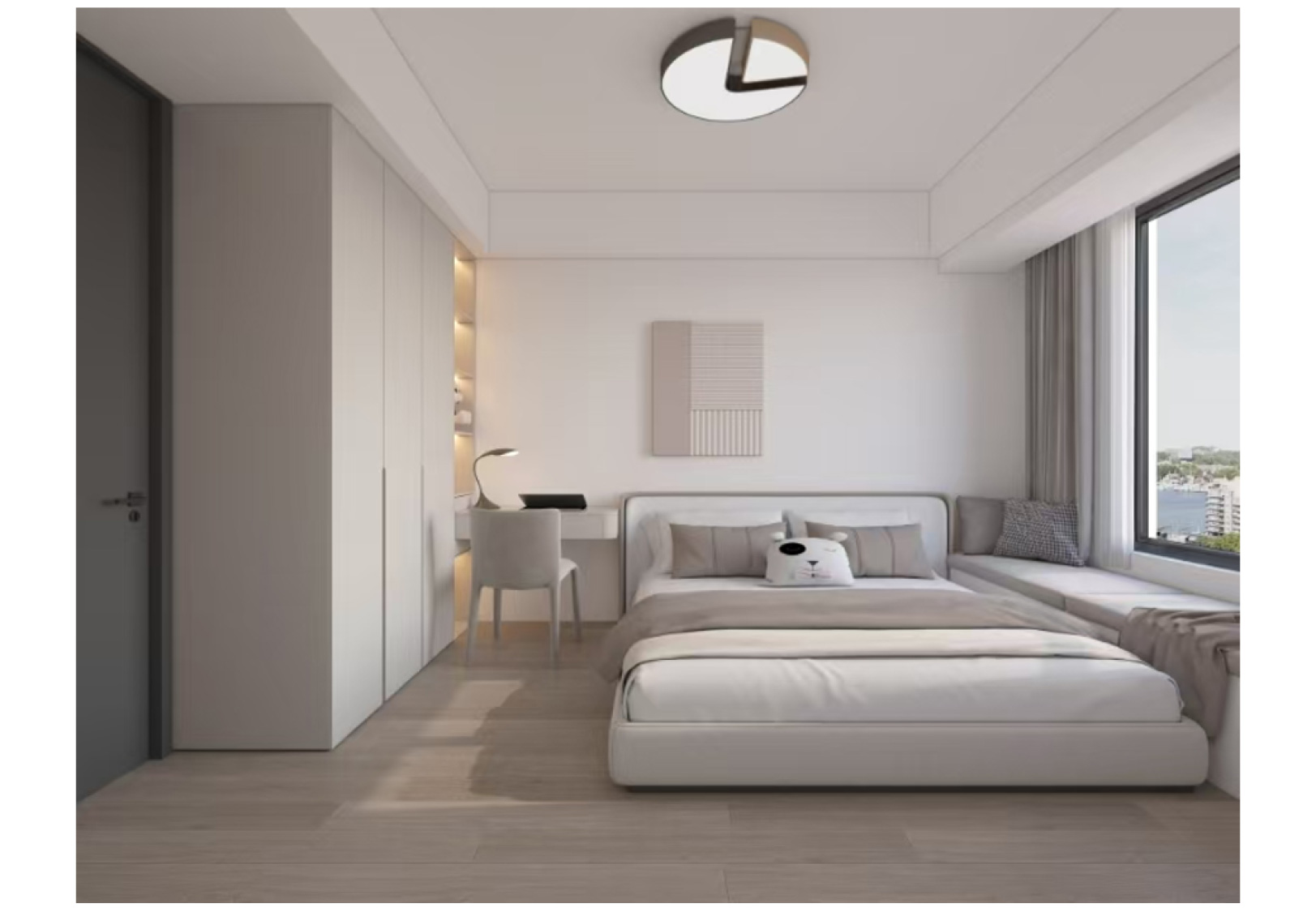 用胡桃木墙板跟灰色碰撞出不一样的火花,既有灰色的清冷,又有胡桃木的温馨,使得整个家充满无限可能。